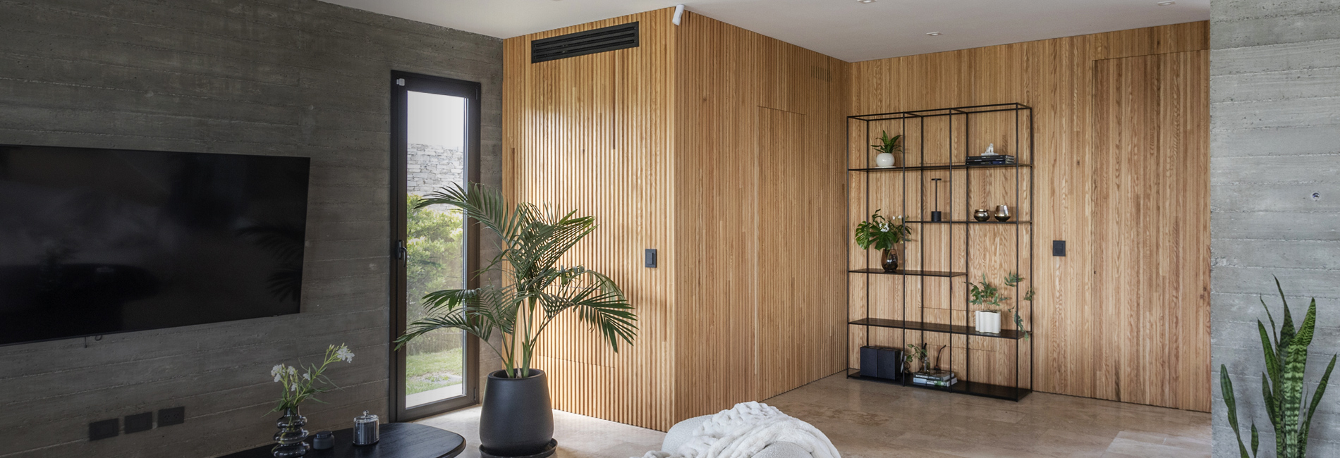 Diseño elegante y una gran primera impresión en puerta de acceso e interiores con madera de Roble Americano para el estudio de Arq. Eleonora Catardi. Sigue leyendo