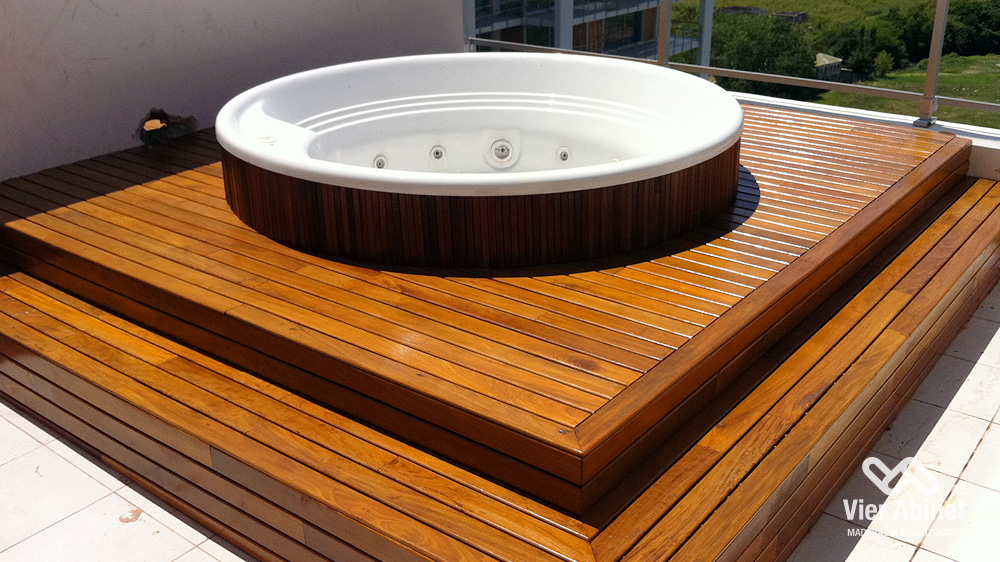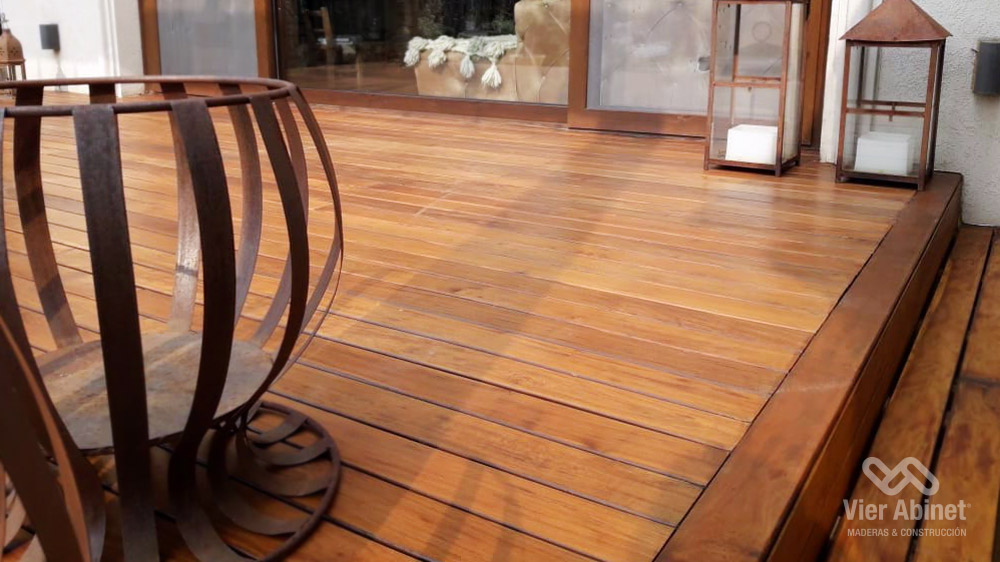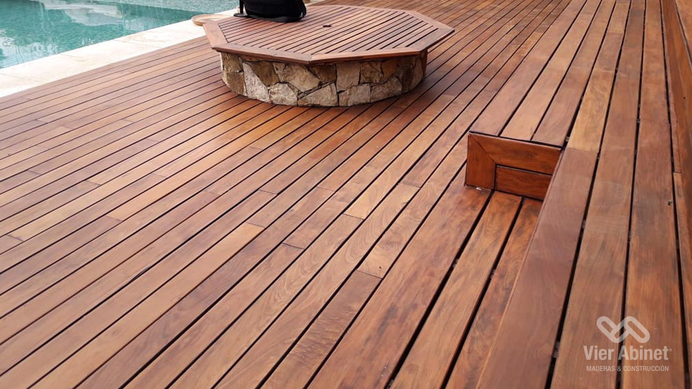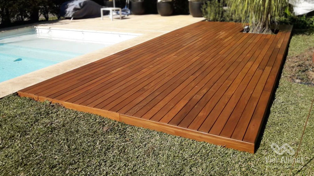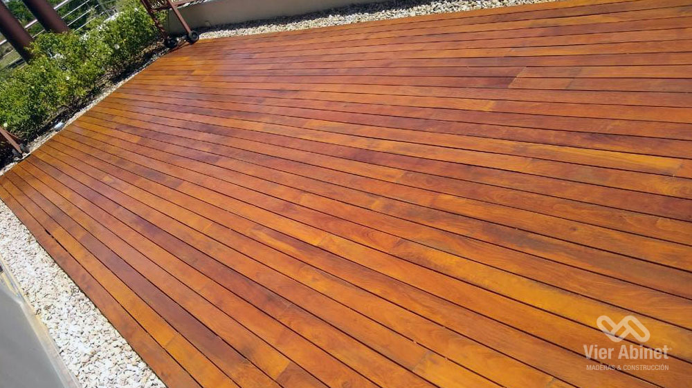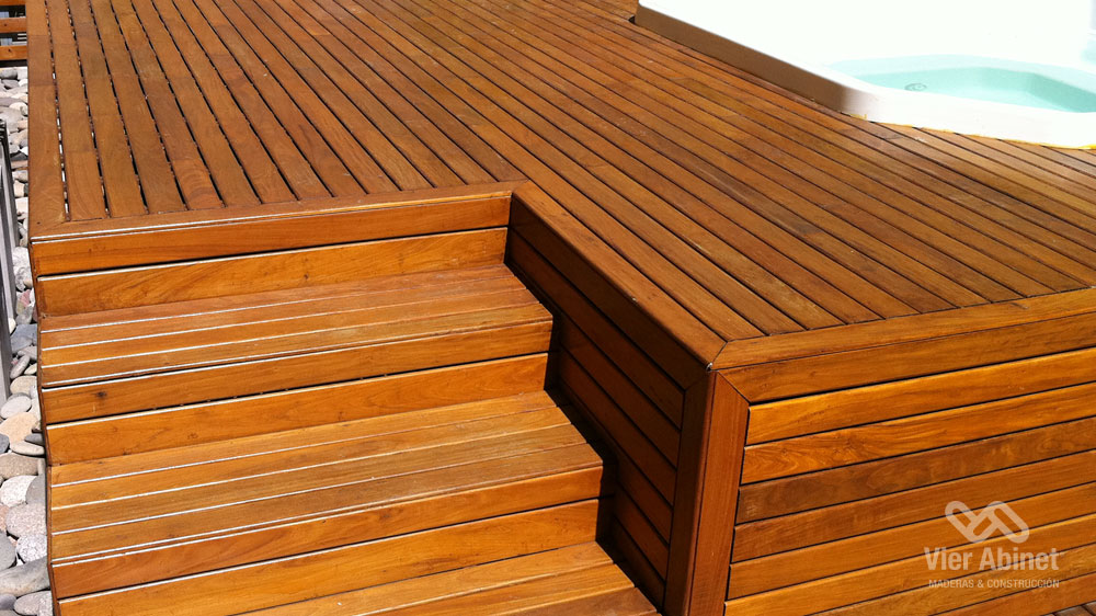 Fabricamos nuestro Deck de Lapacho con madera dura y pesada. El Lapacho cuenta principalmente con un color amarillo verdoso, con vetas poco pronunciadas y visualmente cálido y agradable.