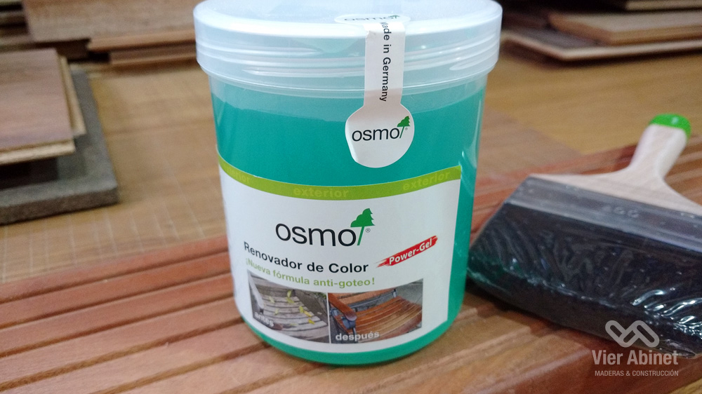 Eficaz limpiador en gel para renovar la madera agrisada. El gel penetra profundamente en la madera y elimina la pátina gris recuperando sus cualidades naturales: reaparece el tono cálido y suave de la madera. Fácil aplicación. No gotea, se puede utilizar en superficies verticales sin problemas. Inodoro y biodegradable; no contiene disolventes, formaldehído, aminas, ni compuestos de cloro. Para la renovación de la madera exterior en general; especialmente recomendado para tarima de exteriores y fachadas de madera, muebles de jardín y elementos similares. Luego del secado, se recomienda aplicar algún aceite Osmo para proteger y restaurar por completo la madera. Un litro cubre aprox. 10 m2 aplicando una mano.