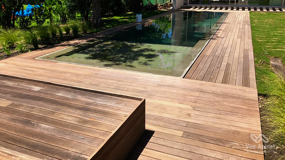 Fuimos convocados por el Estudio Parra para dar forma a la fabricación e instalación de decks en madera lapacho al natural antideslizante, y trabajos de revestimientos también en madera lapacho macizo, conservado al natural.