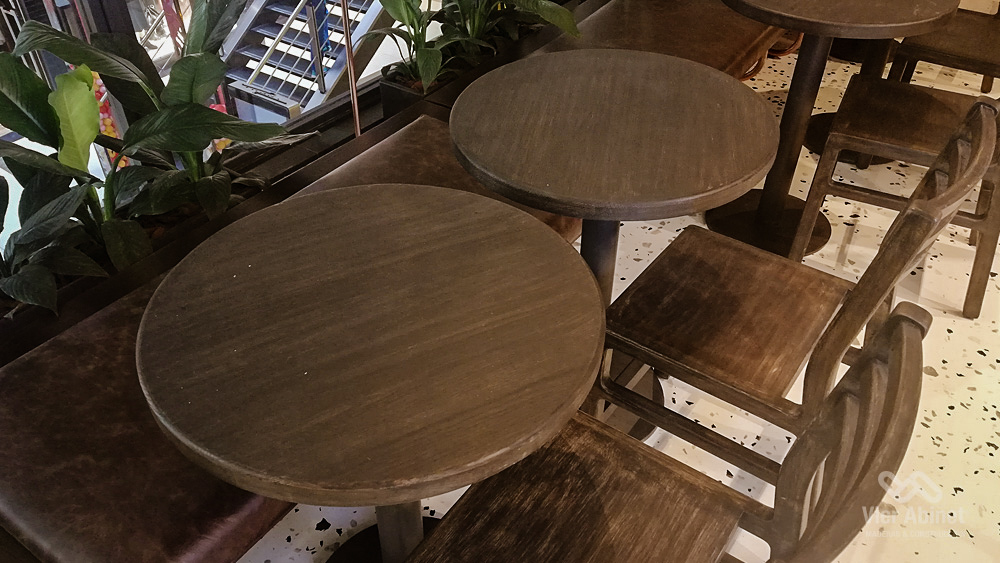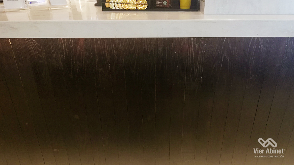 Toda la madera, revestimientos y muebles, fue tratada con nuestro excelente aceite para maderas Osmo Aceite Cera, esta vez con un cambio estético a comparación de otros locales Starbucks. Se busco teñir la madera hacia un tono oscuro donde la solución fue la aplicación de Osmo 3161 en tono Ebano, sumando un estilo elegante y natural a las vetas de la madera.